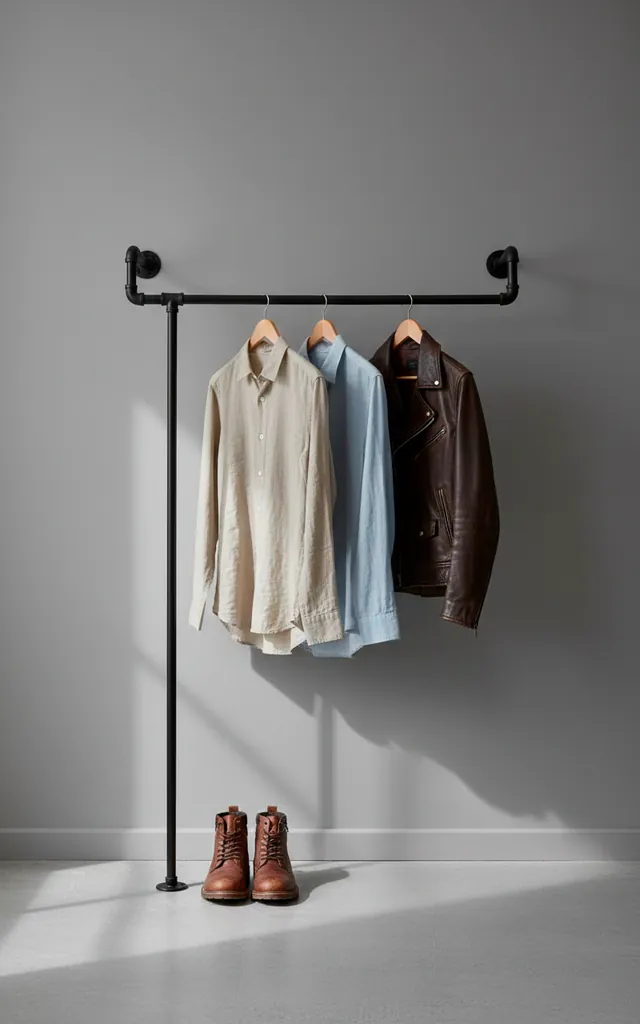 If your closet is bursting at the seams, a wall-mounted rack saves the day. I hung a sleek black pipe rack to display my favorite jackets and hats. IMO, it looks like a boutique display rather than a storage solution. You free up closet space for the ugly stuff while showing off your style. It creates an open, airy vibe that bulky wardrobes just kill. Plus, you’ll find your morning outfit way faster.