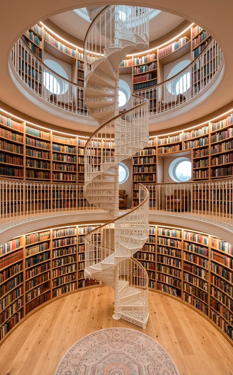 A central spiral staircase acts as the heart of this library. I think a curved bookshelf adds a level of sophistication that straight lines just can’t match. Have you ever walked up a winding set of stairs just to find a hidden gem on the top shelf? I love how this layout saves floor space while creating a stunning visual anchor. It reminds me of a classic European archive. IMO, this is the ultimate way to show off a massive collection.