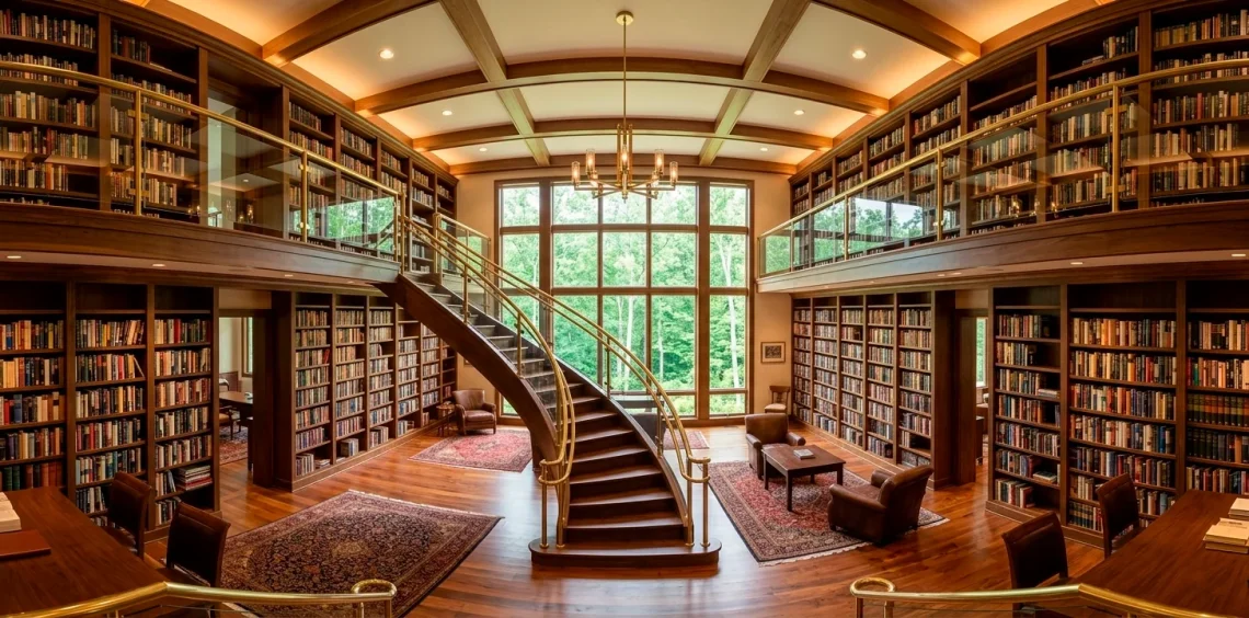 Not every grand library needs its own massive room. I love carving out a two-story library from a tall living area using a mezzanine. This design keeps you connected to the rest of the house while providing a private escape. Why build a wall when you can build a shelf? I enjoy sitting on the upper ledge and looking down at the bustle of the house below. It provides the perfect balance of solitude and social life.