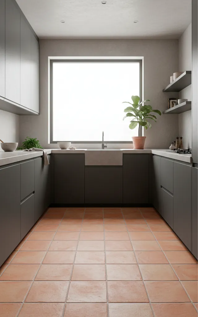 Charcoal grey provides a moody backdrop, but terracotta brings the soul. This isn’t your grandma’s orange kitchen; it’s a sophisticated, earthy contrast. The warmth of the clay balances the industrial feel of the grey perfectly. Who knew clay colors could look this modern?