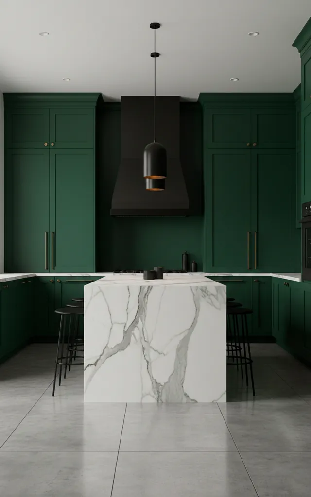 I’ve seen this look in several high-end lofts lately, and it never fails to impress. The deep green acts as a lush backdrop that makes the white marble literally sing with brightness.