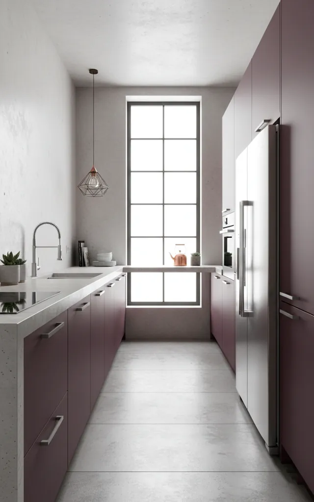 Okay, hear me out—plum is the underdog of the kitchen world. When you pair a dark purple with industrial concrete, the result is unexpectedly chic. It’s bold, sure, but it feels incredibly intentional and unique. Why follow the herd when you can lead with plum? :/