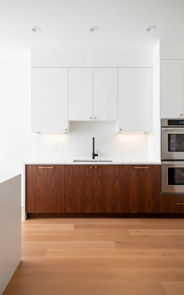 I love how the walnut grain adds a natural texture to the sterile white. It’s a timeless look that feels fresh every single morning. It’s the perfect balance of light and dark.