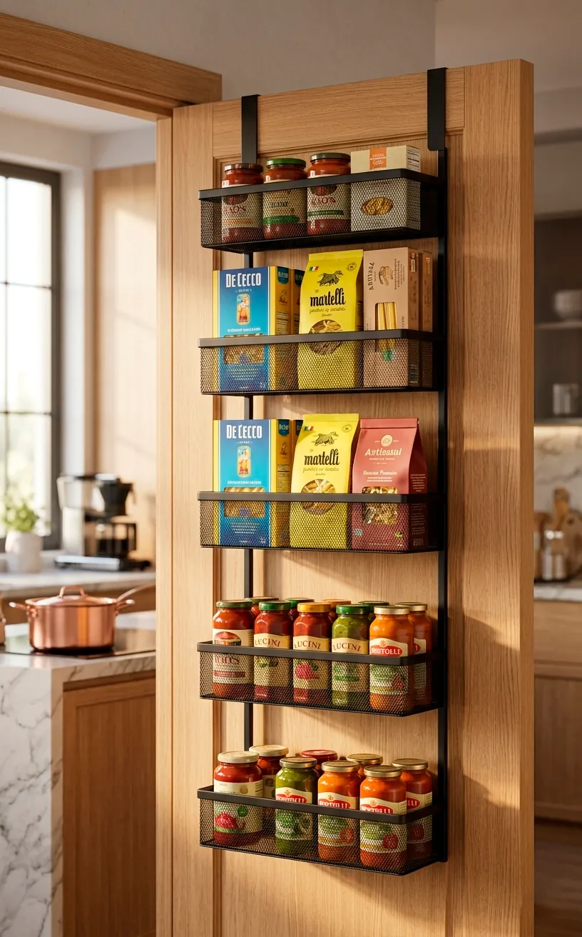 The back of your door is basically free land, and honestly, you’re wasting it. Most people ignore this vertical goldmine, but a heavy-duty over-the-door rack can hold everything from canned beans to that giant bag of flour you haven’t touched in months. It keeps the essentials at eye level and frees up your precious shelf space for things that actually need depth.