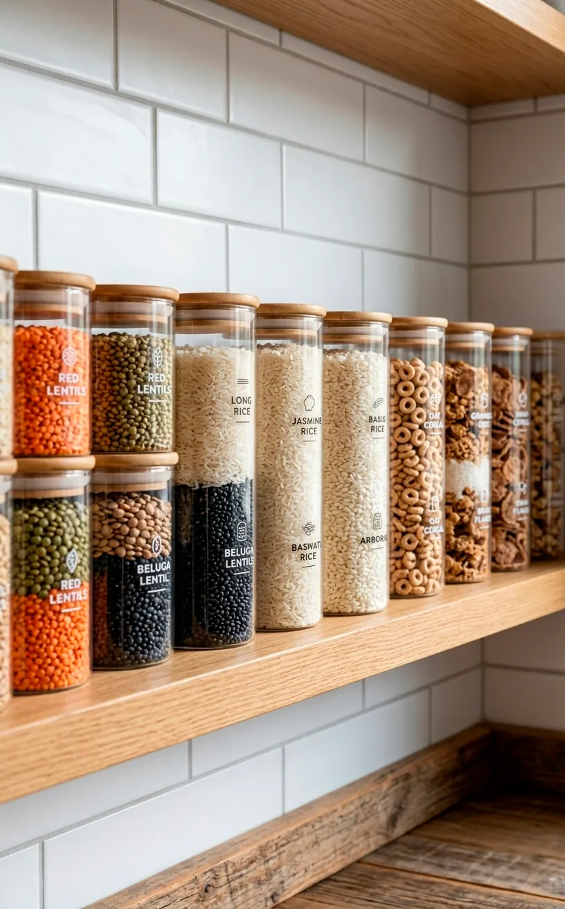 Cardboard boxes are the enemy of the small pantry. They are bulky, oddly shaped, and half the time they’re mostly air. Switching to uniform glass or BPA-free plastic containers instantly makes your space look like a Pinterest board instead of a chaotic grocery aisle. Plus, seeing exactly how much rice you have left prevents those tragic ‘I thought I had more’ dinner moments. IMO, matching lids are the ultimate adulting flex. Just make sure you label them, or you’ll eventually mix up the salt and sugar, and nobody wants that kind of morning surprise! 🧂
