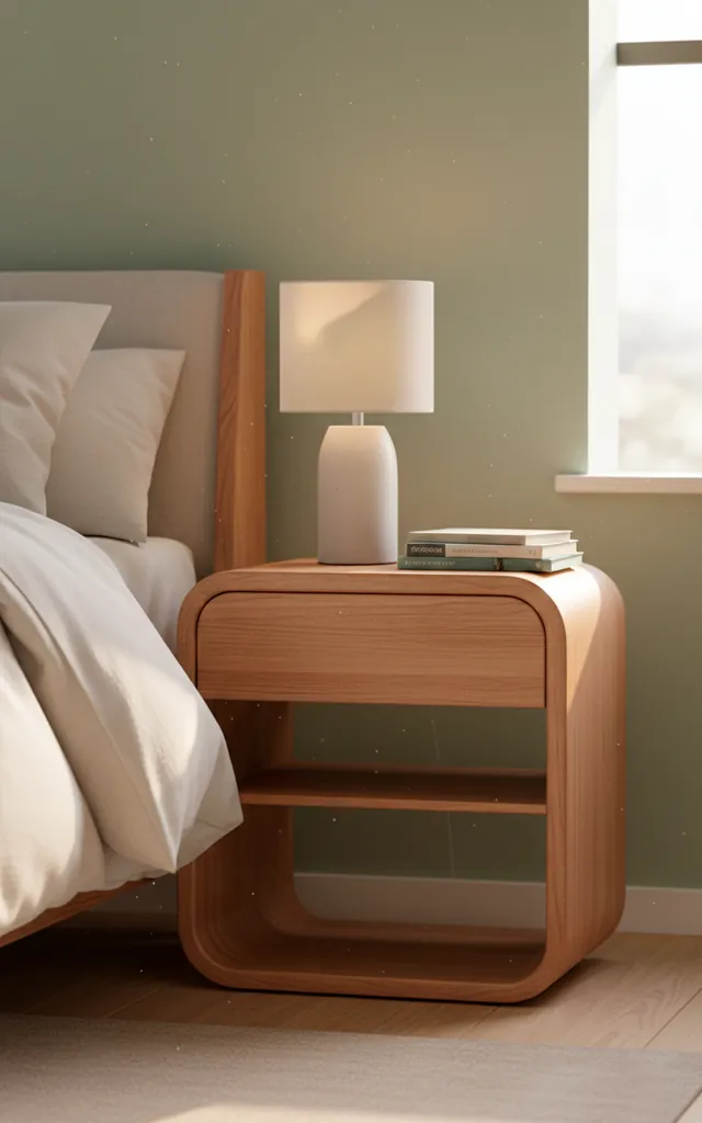 I love the organic curves of bentwood furniture. A small nightstand with a curved shelf offers a soft touch in a room full of hard edges. It’s the perfect height for a glass of water or a nightlight. You won’t find any sharp corners here, which is a win for anyone with a clumsy toddler. This piece feels incredibly high-end but stays practical for daily use. It ties the whole ‘modern-meets-retro’ look together perfectly.