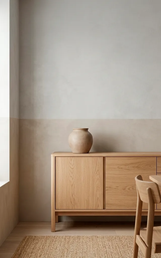 Stop painting everything clinical white! Japandi loves ‘greige,’ oatmeal, and soft charcoal. I ditched the bright, aggressive colors for a palette that mimics a forest floor. These tones provide a neutral backdrop that lets your food and conversation take center stage. Why compete with your walls for attention? I recommend mixing cool Scandi greys with warm Japanese browns to find that perfect balance. It creates a cohesive look that feels sophisticated yet incredibly welcoming. It’s like a visual reset button for your brain every time you sit down to eat.