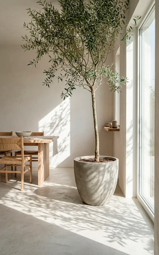 Unless you enjoy eating in a sterile laboratory, you need some plants. Japandi isn’t about a jungle vibe, though; it’s about ‘less is more.’ I prefer a single, striking branch or a well-placed bonsai tree. These living elements bring a necessary pop of color and oxygen to the room. Why settle for fake plastic leaves when a real olive tree adds so much character? Choose plants with interesting structures and clean lines. They act as living sculptures that change with the seasons, keeping your dining room feeling fresh and connected to the outdoors.