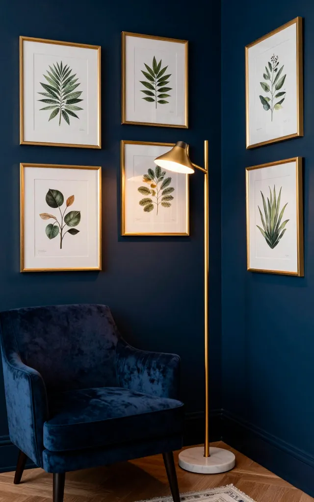 Navy and gold go together like coffee and Sunday mornings. I find that a few brass touches prevent a dark room from feeling like a black hole. Think about adding a sleek gold floor lamp or some metallic picture frames. It adds that ‘I have my life together’ vibe even if you are just reading trashy novels. IMO, this is the easiest way to elevate a nook without a full remodel. 🙂