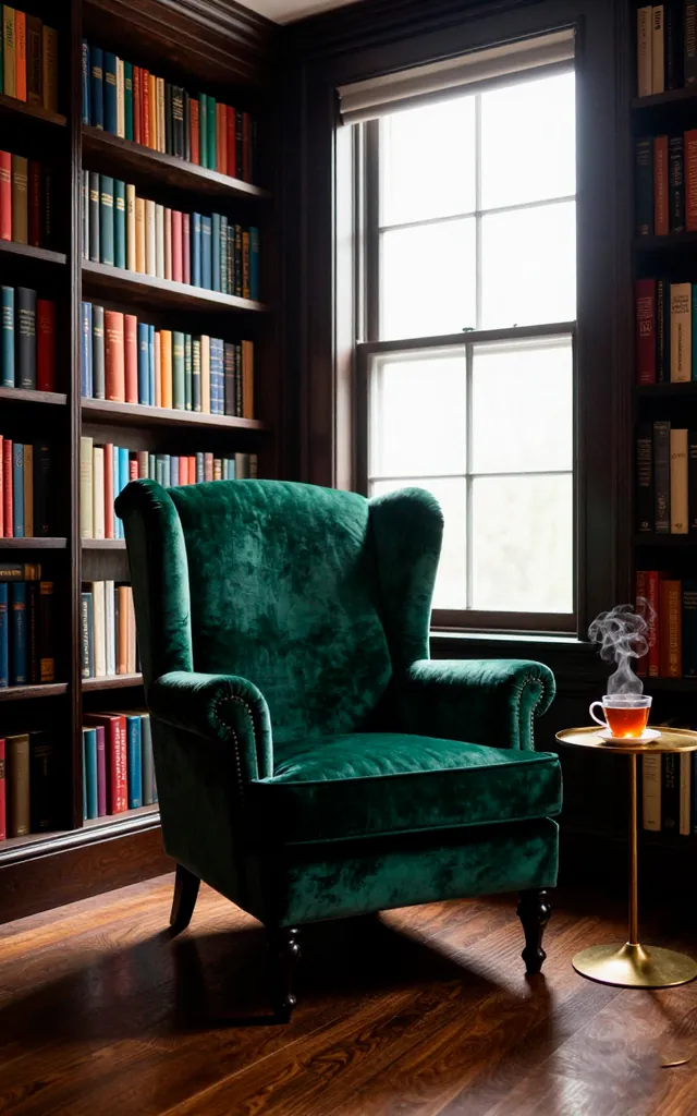 This chair makes a statement before you even sit down. I love how the deep jewel tone pops against a wall of old books. It features sturdy birch legs and button-tufted detailing that scream classic library vibes. The wide wings actually block out ambient noise, giving you a quiet little bubble for your mystery novels. Do you really need a formal living room when you could have this instead? Every reader needs a spot that feels this regal.
