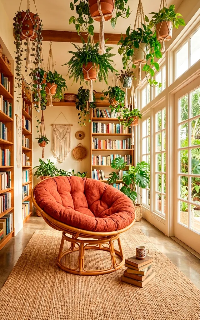 If you want a bohemian vibe, this is your winner. The Terracotta Linen Papasan offers a massive bowl-shaped seat that supports any sitting position. I often find myself sitting sideways or completely curled up in this one. It features a sturdy rattan base that handles plenty of movement. This chair works perfectly in sunlit libraries with lots of plants. Who said libraries have to be stuffy and formal?