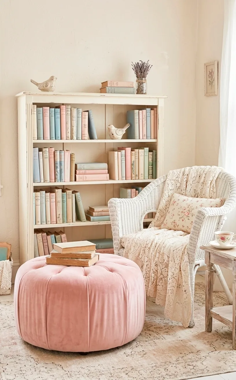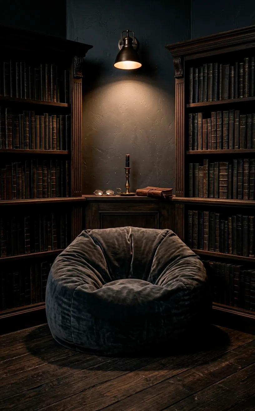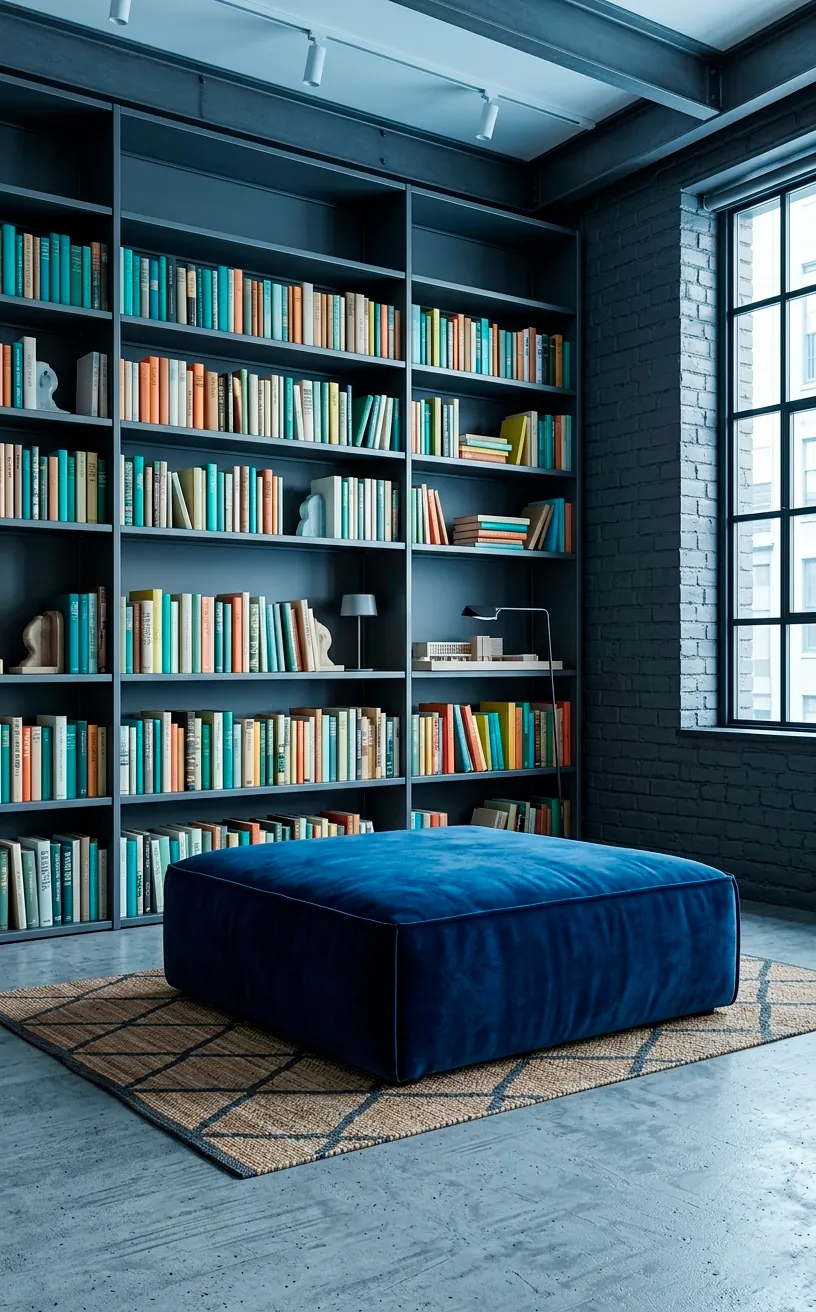 Don’t roll your eyes—blush pink isn’t just for nurseries. In a library filled with dark, heavy materials, a blush velvet pouf adds a much-needed softness that invites you to stay a while. It creates a romantic, dreamlike atmosphere that pairs beautifully with poetry or classic literature.