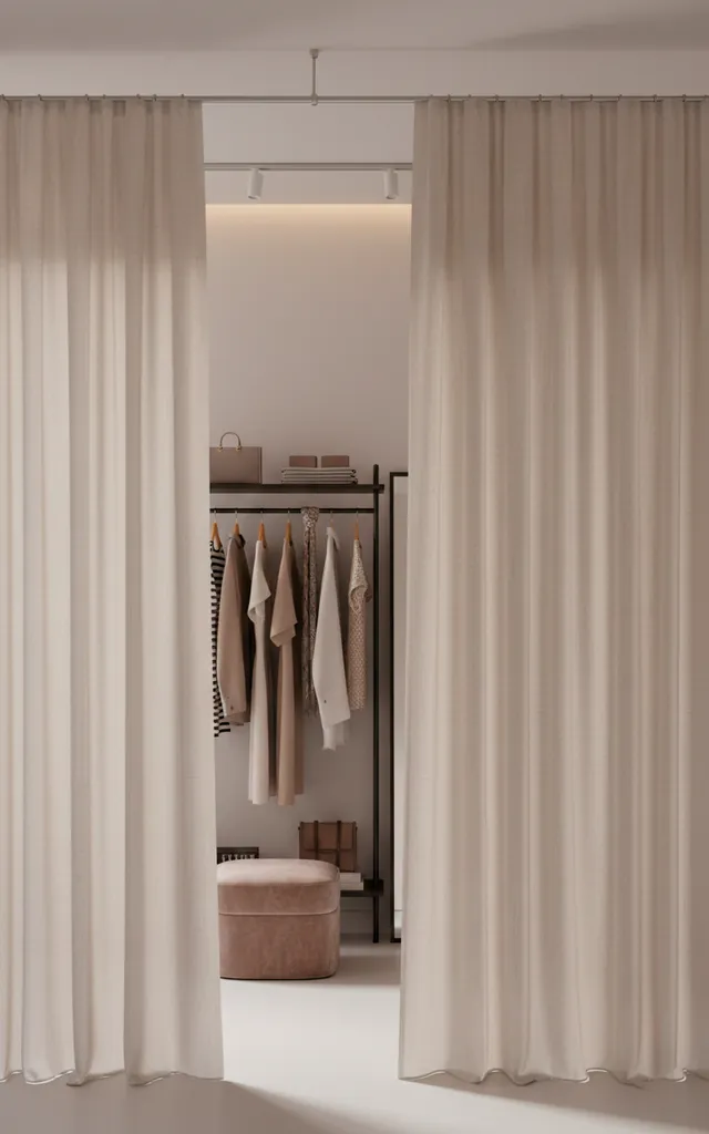 I hate looking at my clothes while I’m trying to sleep in a studio. I installed a ceiling-mounted curtain track to wall off my dressing area. This creates a dedicated ‘room’ feeling without the permanence of a wall. I chose heavy linen curtains to add texture and sound dampening. It hides the chaos of a busy morning in seconds. Do you want a bedroom or a closet? Now you can have both without the visual clutter.