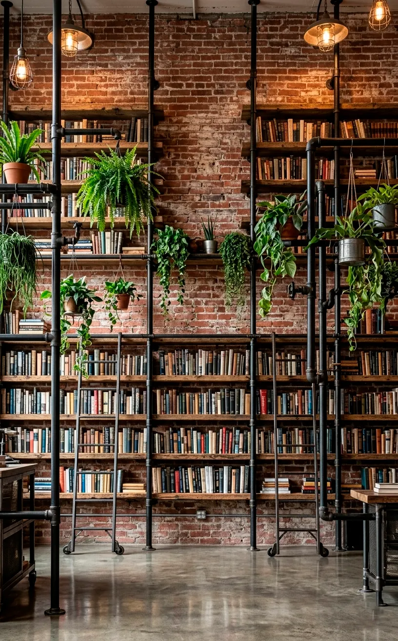 I love how the black metal contrasts with the colorful book spines. It’s like your library is wearing a leather jacket. Does it get any cooler? Just make sure you anchor those pipes into the studs unless you want your entire life’s collection to come crashing down during dinner.