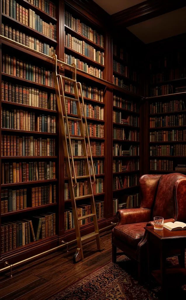 Nothing screams ‘I have a sophisticated secret life’ quite like a brass rolling ladder. Imagine gliding across your massive collection like a refined Disney character while you hunt for that one specific first edition. It feels incredibly cool, doesn’t it? Beyond the sheer vanity of it, a ladder actually makes those unreachable top shelves functional for humans who weren’t born seven feet tall.