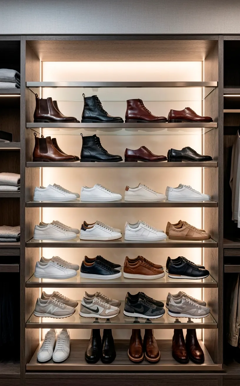 Stop hiding your shoes in the dark corners of the floor. I treated my favorite heels and boots like pieces of art by placing them on eye-level shelves. It changes the whole vibe of the room from ‘closet’ to ‘private boutique.’ 🙂