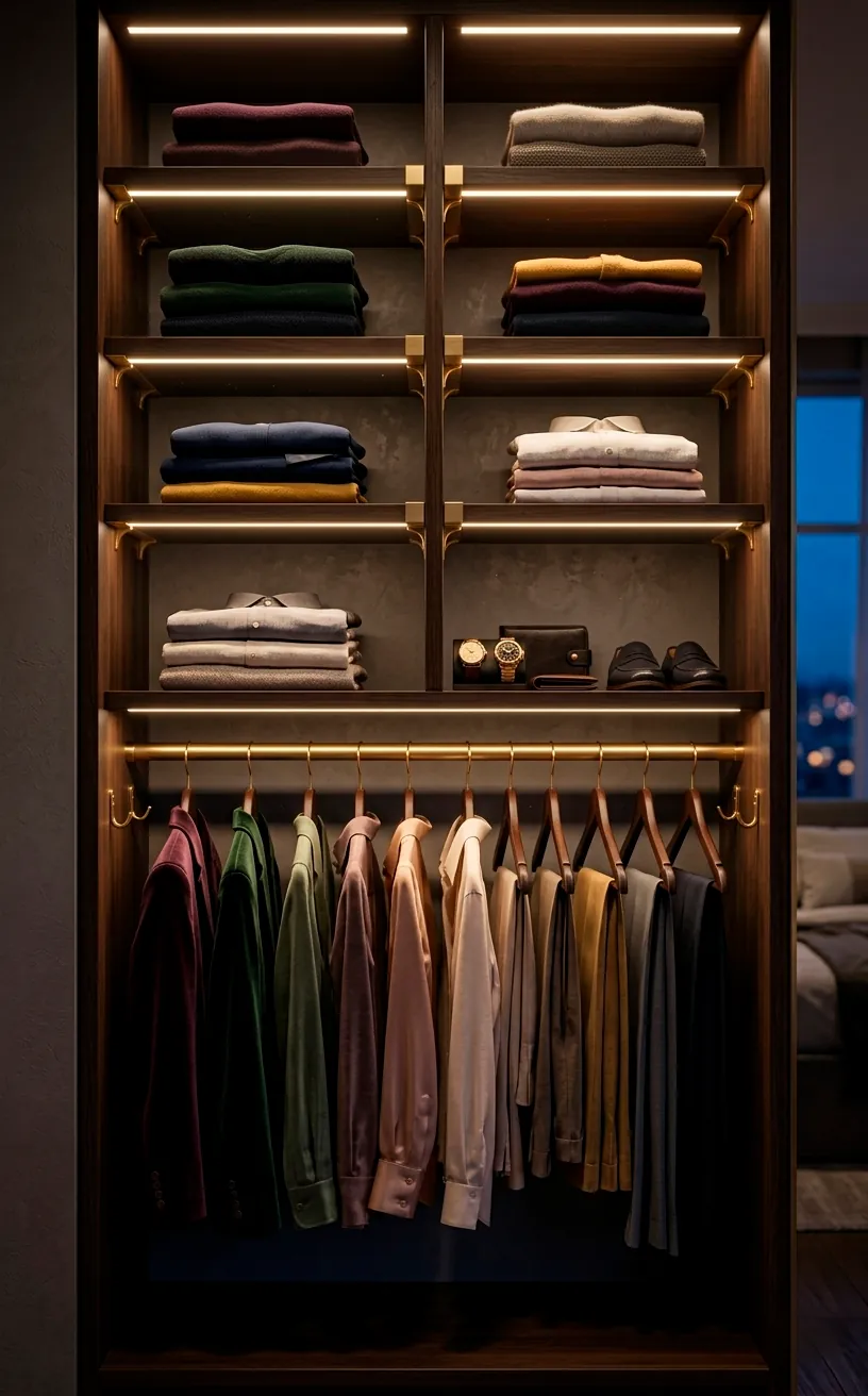 Good lighting is the difference between finding your outfit and rummaging in a cave. I added rechargeable LED strips under my shelves, and it was a total game-changer. It highlights the textures of your clothes and makes the whole setup look expensive without a massive electric bill.