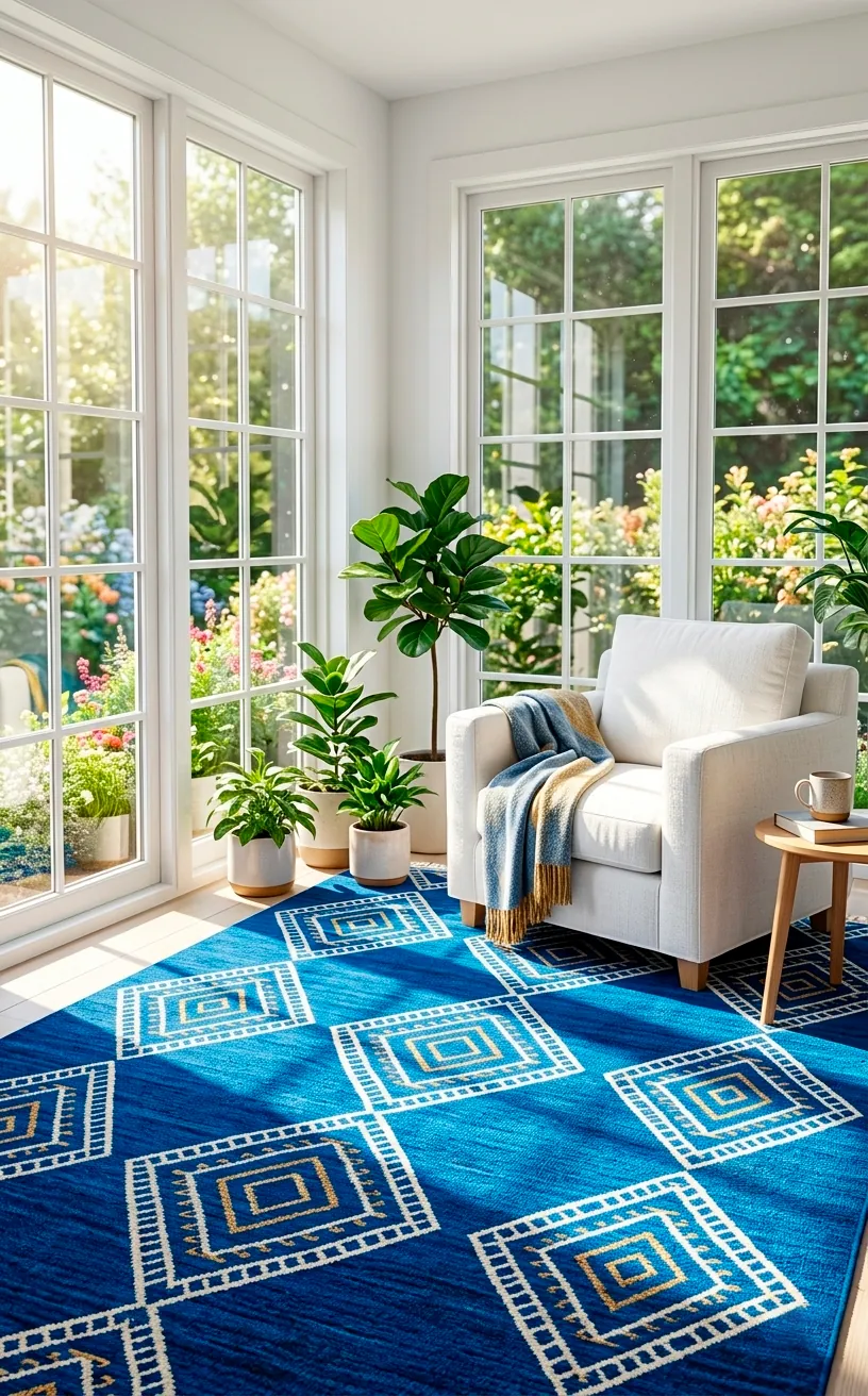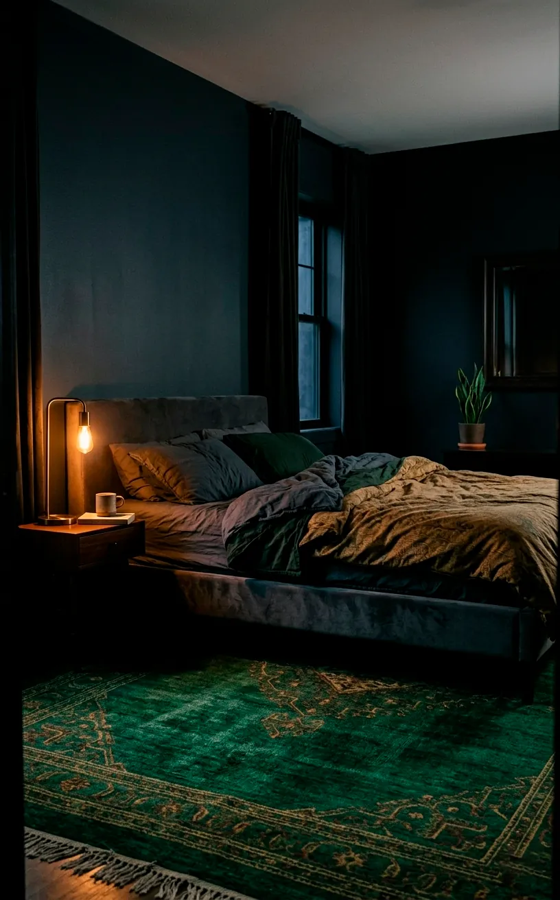 Doesn’t your soul just crave a bit of greenery? This rug provides that lush atmosphere without the need for a watering can. It works beautifully in bedrooms where you want to promote a sense of rest and luxury. If you’re looking to go full-on regal, check out these emerald green living room ideas to complete the look.