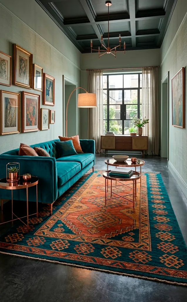 Emerald green is the color of envy for a reason. A vintage-style emerald Kilim adds an organic, earthy feel that instantly connects your indoors with the outside world. I personally paired one of these with a few oversized floor plants, and the transformation was legendary.