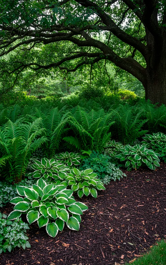 Don’t ignore those dark corners under your big trees! I used to think nothing grew in the shade, but I was totally wrong. Hostas and Ferns offer incredible foliage texture that brightens up even the gloomiest spots. I mix in some Bleeding Hearts for a pop of color in late spring. FYI, deer love hostas, so keep your repellent spray handy! Ever considered a shade garden as a cooling retreat?