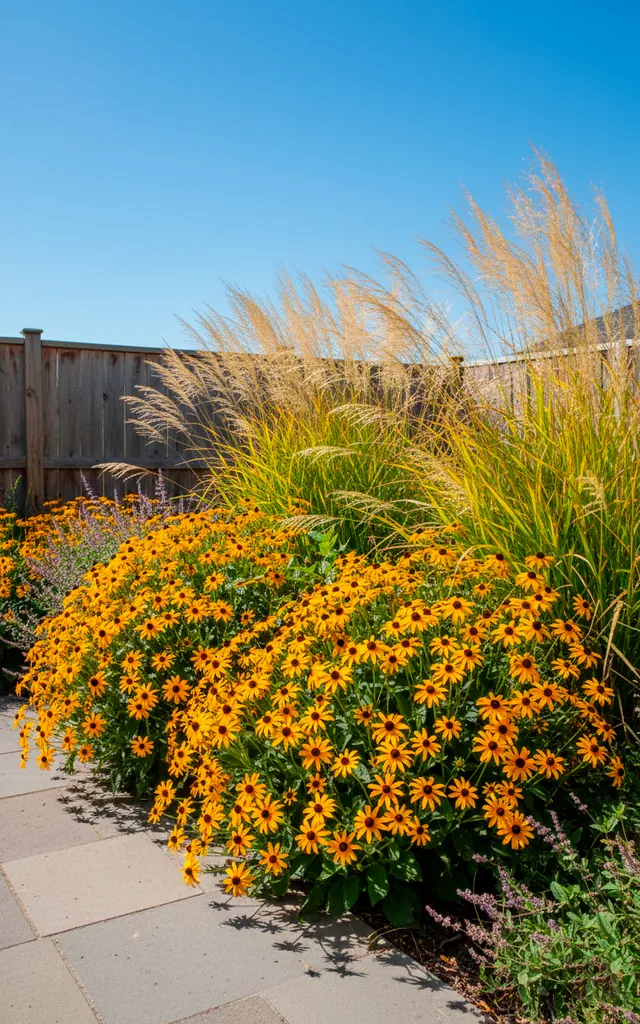 Flowers are great, but foliage adds the structure you need. Ornamental grasses provide movement that keeps your border from looking stiff or boring. I pair Feather Reed Grass with late-blooming Black-Eyed Susans for a rustic look. This duo stays beautiful well into the autumn months. Why let your garden die back in September when it can still look this good?