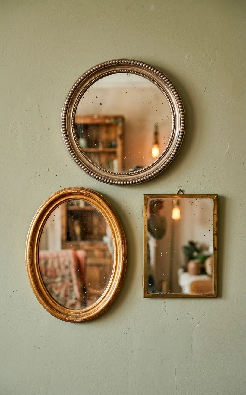 Look for mirrors with ‘foxing’—those tiny dark spots on the glass—because they prove the piece has actually lived a life. Does anyone really want a mirror that looks like it just rolled off an assembly line? Probably not if you’re reading this. Grab a hand mirror or a small vanity piece and mount it directly to the wall for an unexpected, playful touch.