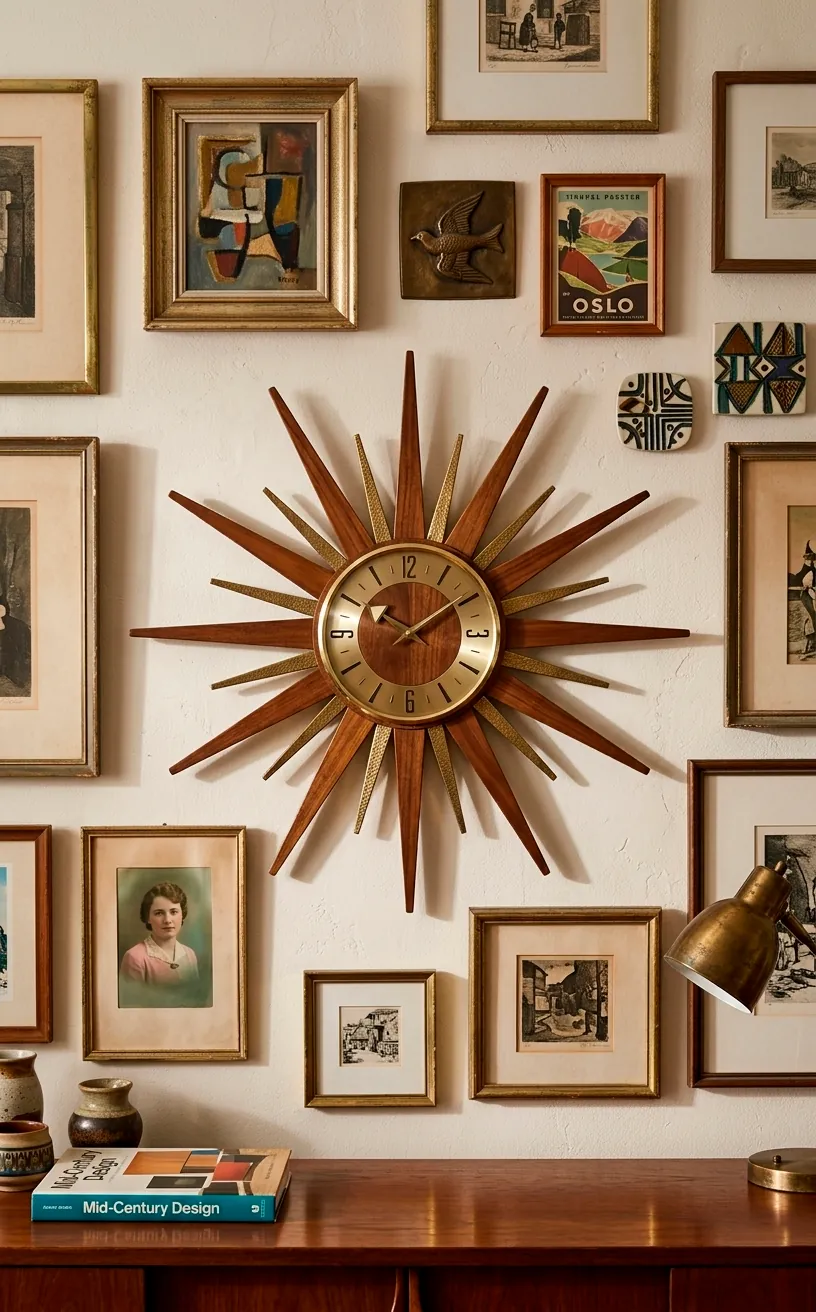Last but not least, every gallery needs a heartbeat, and a vintage mechanical clock provides exactly that. Whether it’s a sunburst MCM piece or a tiny wooden cuckoo clock, it adds movement and life to a static display. FYI, the gentle ticking is actually quite soothing once you get used to it.