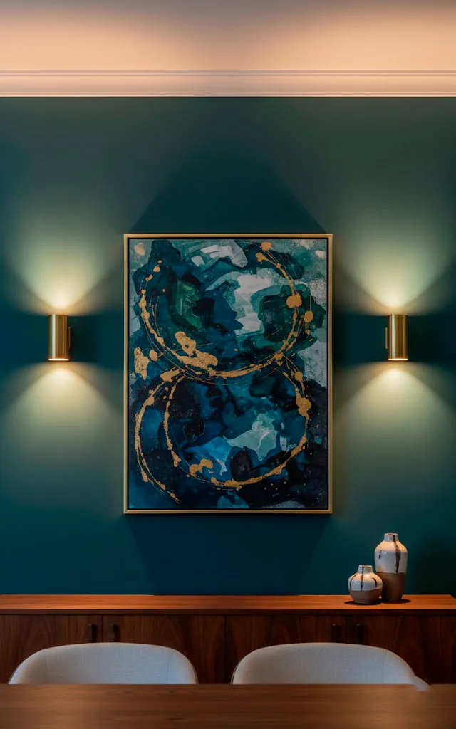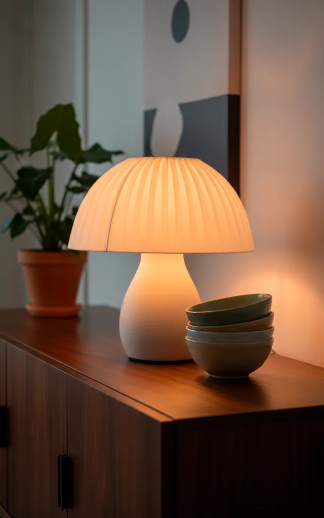 A small table lamp on a sideboard or buffet adds a surprising amount of charm to a dining room. I treat mine like a little piece of sculpture that just happens to glow. It breaks up the ‘ceiling-heavy’ lighting and brings the light down to eye level, which feels much more intimate. I often choose a lamp with a fabric shade to ensure the light is soft and diffused rather than sharp. IMO, it’s the best way to fill that weird dark gap between the table and the wall. Plus, it makes a great nightlight for when you’re sneaking into the kitchen for a midnight snack.