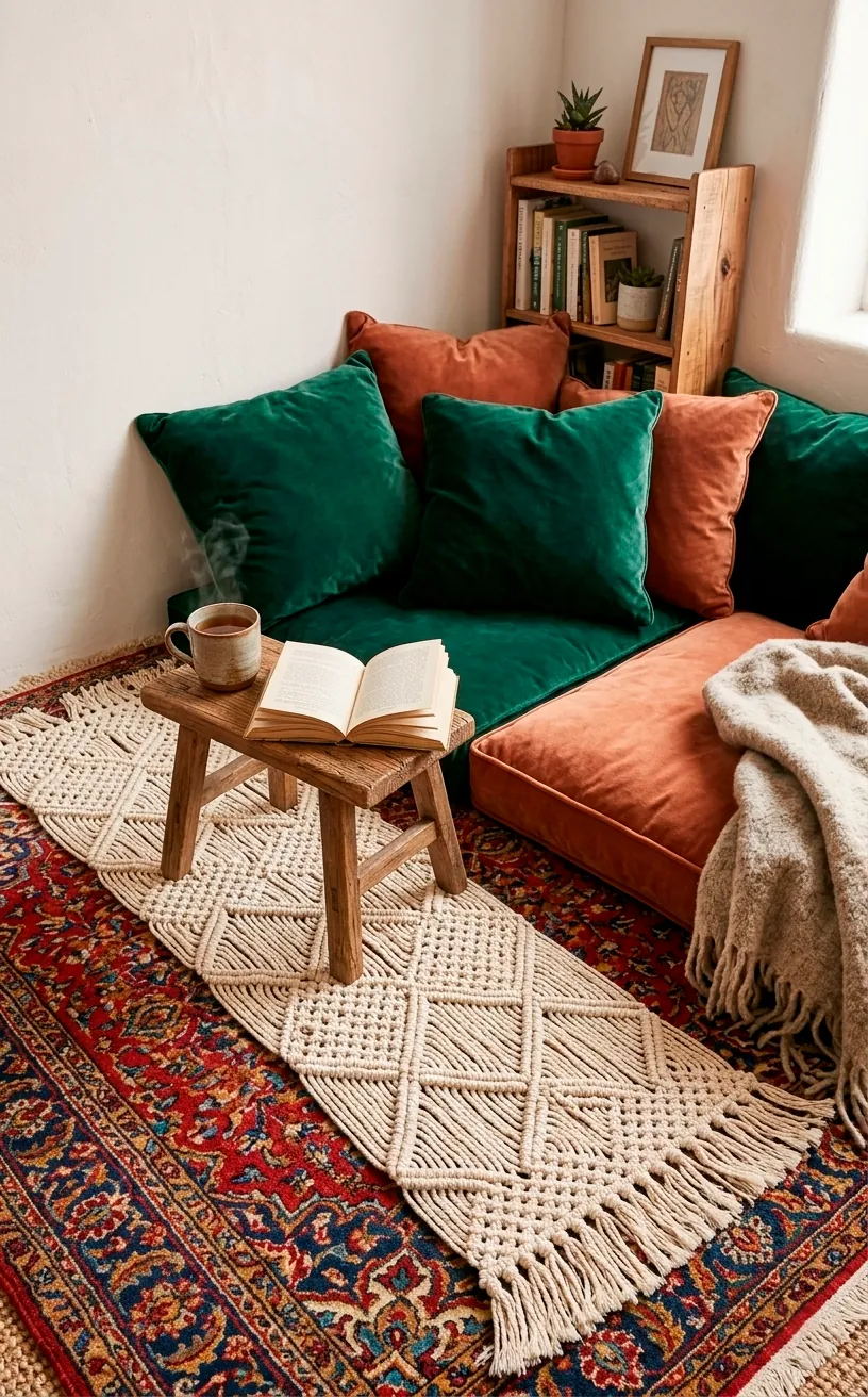 Plants are non-negotiable in a boho nook. I truly believe you can’t have too many. Use multi-tiered macramé hangers to suspend your leafy friends at different heights. This creates a living canopy that makes you feel like you’re reading in a secret garden.