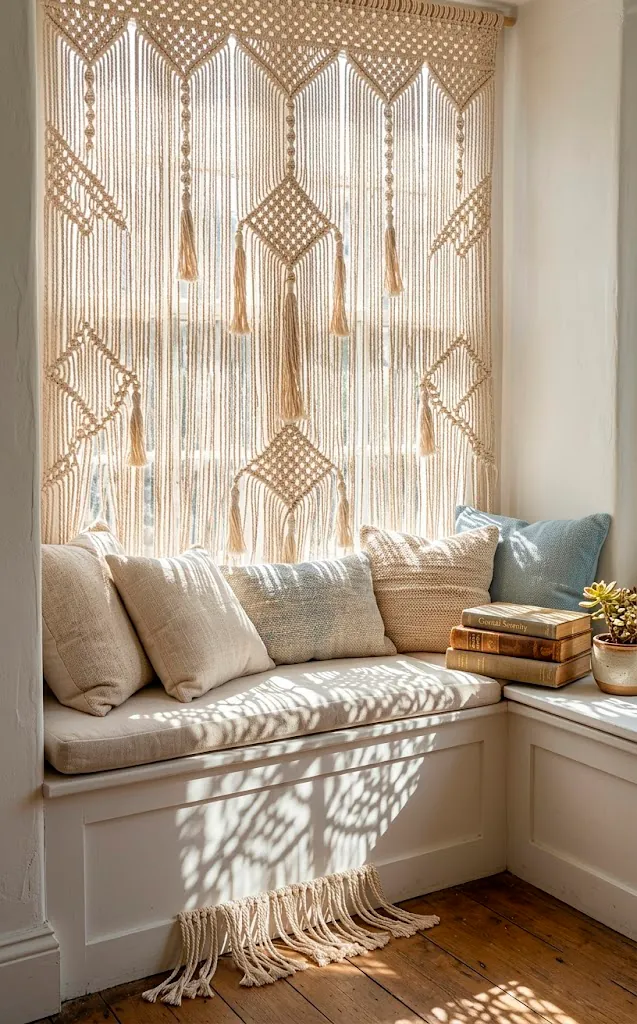 If you have a window, you have a nook. Swap those boring blinds for sheer macramé curtains. They filter the light into beautiful geometric patterns on your floor. It’s basically natural disco for bookworms.