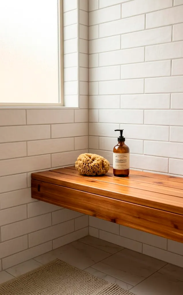 Why stand when you can sit? Adding an integrated wooden bench inside the shower or along a main wall is peak hygge. I think it adds a spa-like intentionality to the room that most standard layouts miss. It gives you a place to perch while you exfoliate or just a spot to display some pretty glass jars. Keep the wood light—think bamboo or cedar—to stay within that Nordic aesthetic. It’s a functional piece of furniture that doubles as a architectural detail. Just ensure you treat the wood properly for moisture, or it’ll look sad real fast. FYI, a bench also makes the bathroom much more accessible for guests!