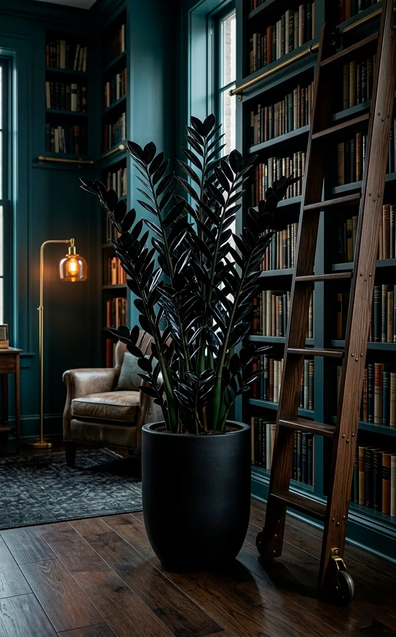 If you have a habit of forgetting your plants exist for three weeks at a time, the Raven ZZ is your new best friend. I call it the ‘Goth Starter Plant’ because it basically thrives on neglect and dark corners. It starts with bright green new growth—which is a bit of a plot twist—but the leaves quickly transition to a shimmering midnight black. It honestly looks like something you’d find in a dragon’s lair. This plant handles the low-light conditions of a windowless library better than almost anything else. Since you likely have plenty of shelf space, check out these 8 stunning floor-to-ceiling library ideas to find the perfect perch for your Raven.