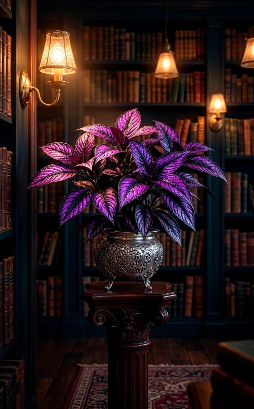 Okay, this one is technically purple, but in a dark library, it looks like a shimmering metallic bruise. The Strobilanthes dyerianus (try saying that three times fast) has iridescent leaves that practically glow under a reading lamp. I love how the deep purple veins contrast with the silvery-black surface. It’s definitely the ‘fancy’ member of this list. It does like a bit more humidity than the others, so maybe keep a small mister nearby. Sarcasm aside, it’s worth the extra thirty seconds of effort for that color. 💜