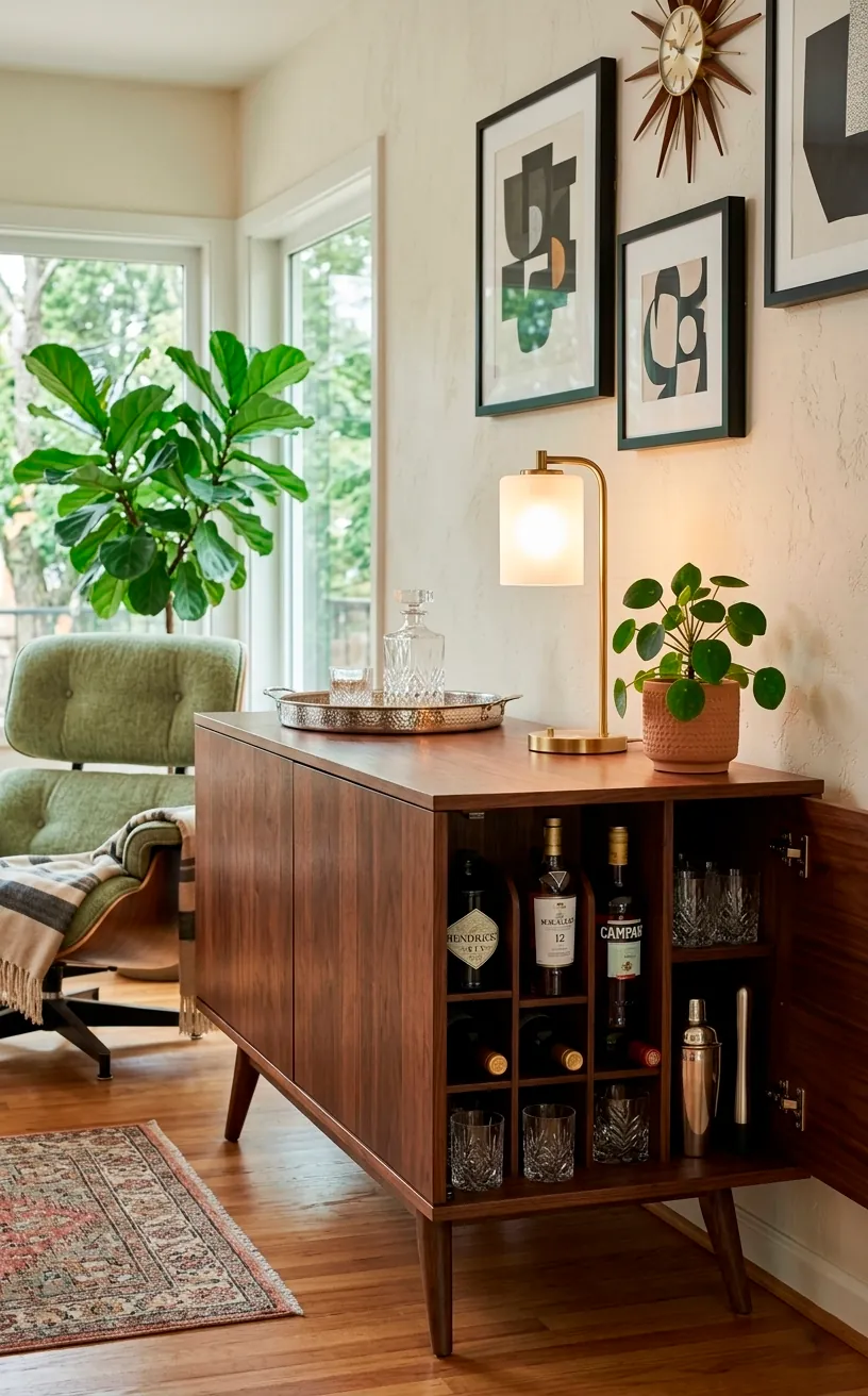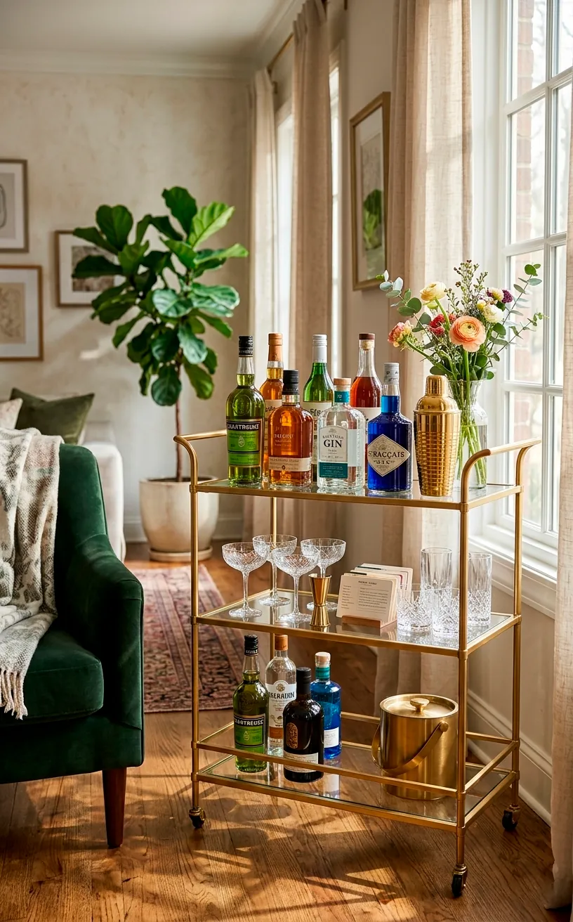 Modern bar carts come in every finish imaginable, from matte black to brushed gold. They provide a certain old-school glamour that static cabinets just can’t match. Just be careful when wheeling them over rugs—nobody wants a literal “shaken, not stirred” situation on their white carpet. If you’re tight on space, look for a folding bar cart that you can hide in a closet when the guests leave. It’s like magic, but with more tequila.