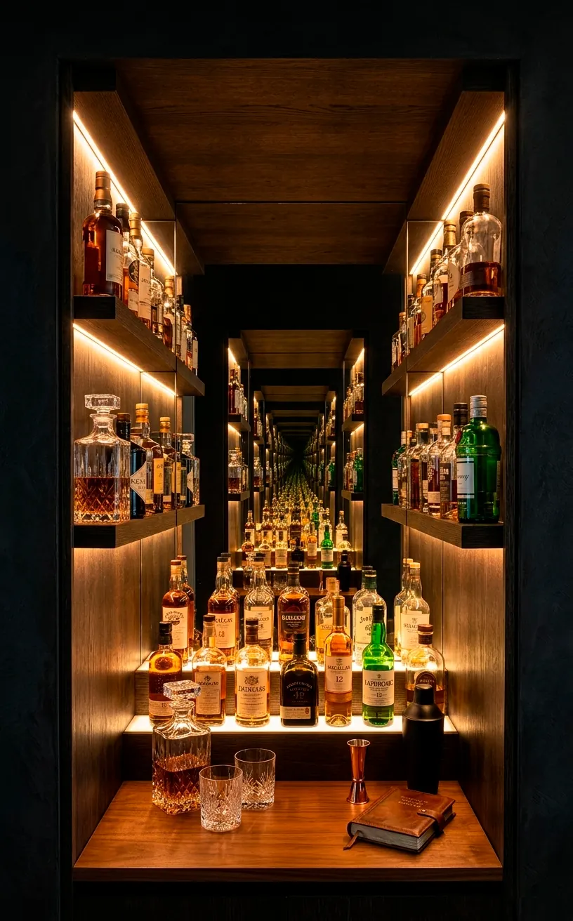You don’t always need more space; sometimes you just need to trick your brain into thinking you have it. Lighting and reflection change the entire vibe of a small home bar. LED strip lights under a shelf or inside a cabinet create a sense of depth that draws the eye inward. I recommend using warm-toned lights to give your bar that high-end lounge feel rather than a sterile laboratory look. Mirrors do the heavy lifting here by reflecting the light and making the area feel infinite. If you have a small niche, line the back wall with mirror tiles. It’s an inexpensive trick that adds immediate luxury. Your guests will think you spent a fortune on a custom build when you really just used some adhesive and a few light strips. It’s all about the illusion! 🥂