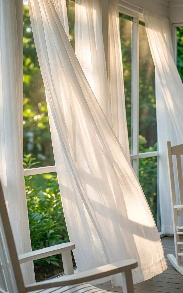 Curtains aren’t just for bedrooms, people! I hung sheer, billowy white panels around the perimeter of my screens to soften the hard lines of the frame. They catch every single breeze and provide a bit of privacy from the neighbors. Plus, they make the whole place feel like a high-end spa in the Maldives. Who doesn’t want that kind of energy in their backyard? Just make sure you choose outdoor-rated fabric so they don’t turn into a mildew farm after the first rain.