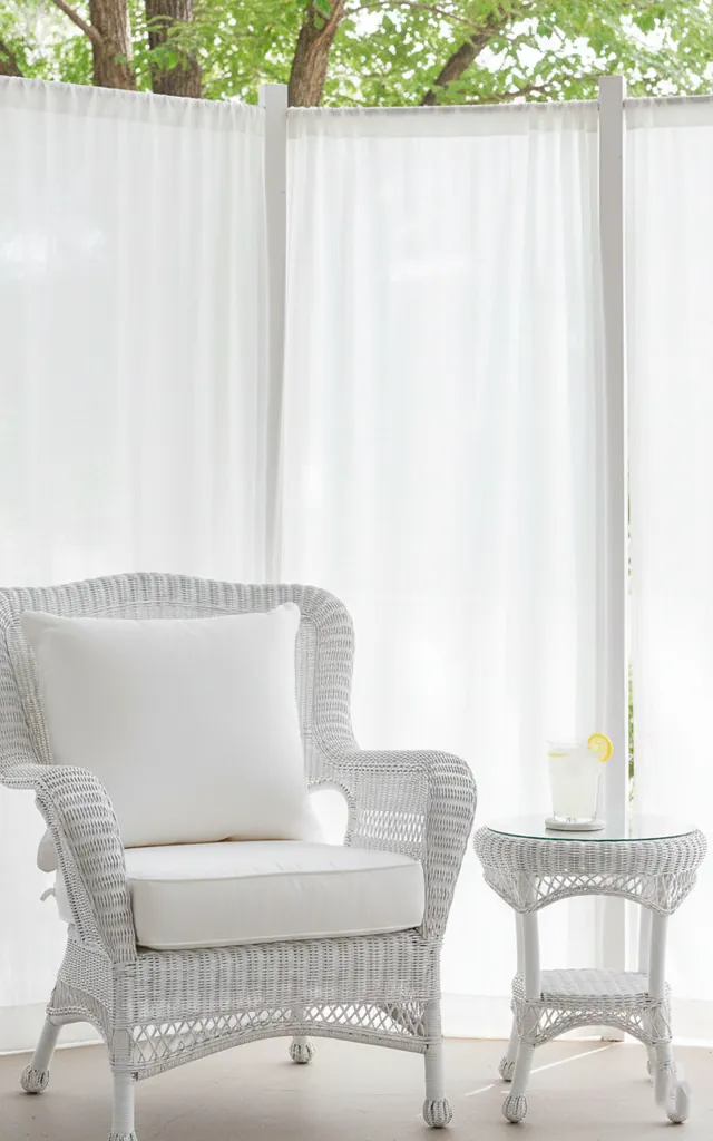 Wicker furniture belongs on a porch, but I prefer it painted a crisp, matte white. I found a vintage set at a flea market and gave it a fresh coat of spray paint to match the theme. It feels light and airy, unlike heavy wooden furniture that weighs down the room. IMO, it’s the ultimate classic choice for a breezy retreat. 🙂 You can swap out the cushions whenever you want a change, but sticking to white-on-white keeps the dream alive.
