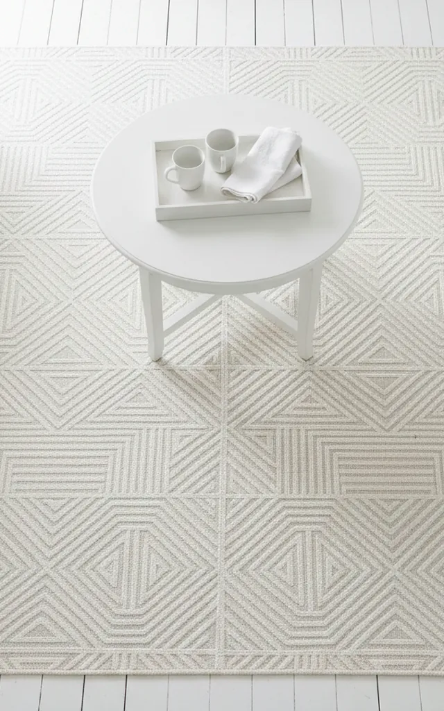 A bare floor can feel a bit unfinished, so I always add an indoor-outdoor rug. I chose a white-on-white geometric pattern that adds subtle interest without breaking the color scheme. These rugs handle spills and rain like a champ, so you don’t have to stress about the all-white rule. Have you seen how much more finished a room looks with a rug? It defines the seating area and keeps your toes happy while you sip your morning coffee.