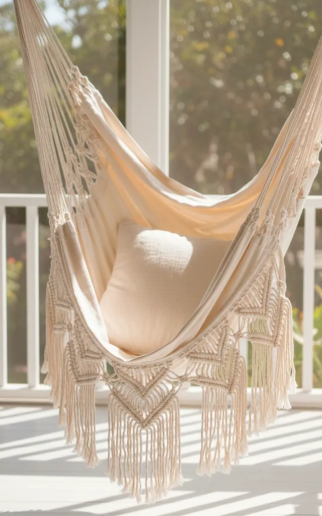 If you have the space, a white macramé hammock is a total game-changer. I spend every Saturday afternoon napping in mine, and it’s basically heaven on earth. It adds a bohemian touch that keeps the all-white look from feeling too stiff or formal. Who knew a piece of rope could provide so much relaxation? Just make sure the anchors are secure, or your airy retreat might involve an unexpected trip to the floor.