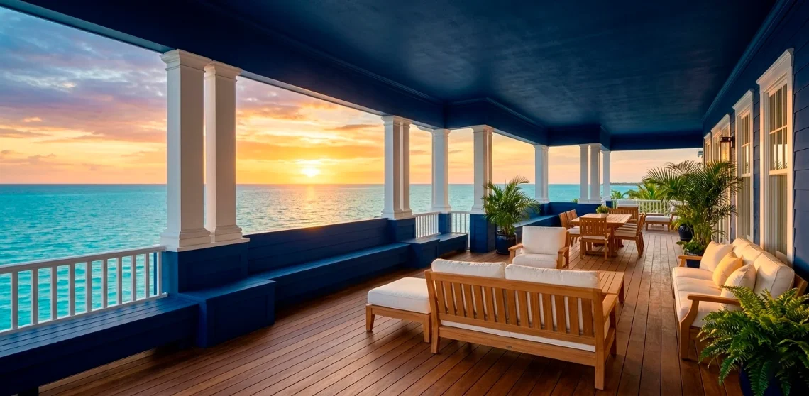 Transform your home with a stunning deep navy wrap-around porch. Discover 7…