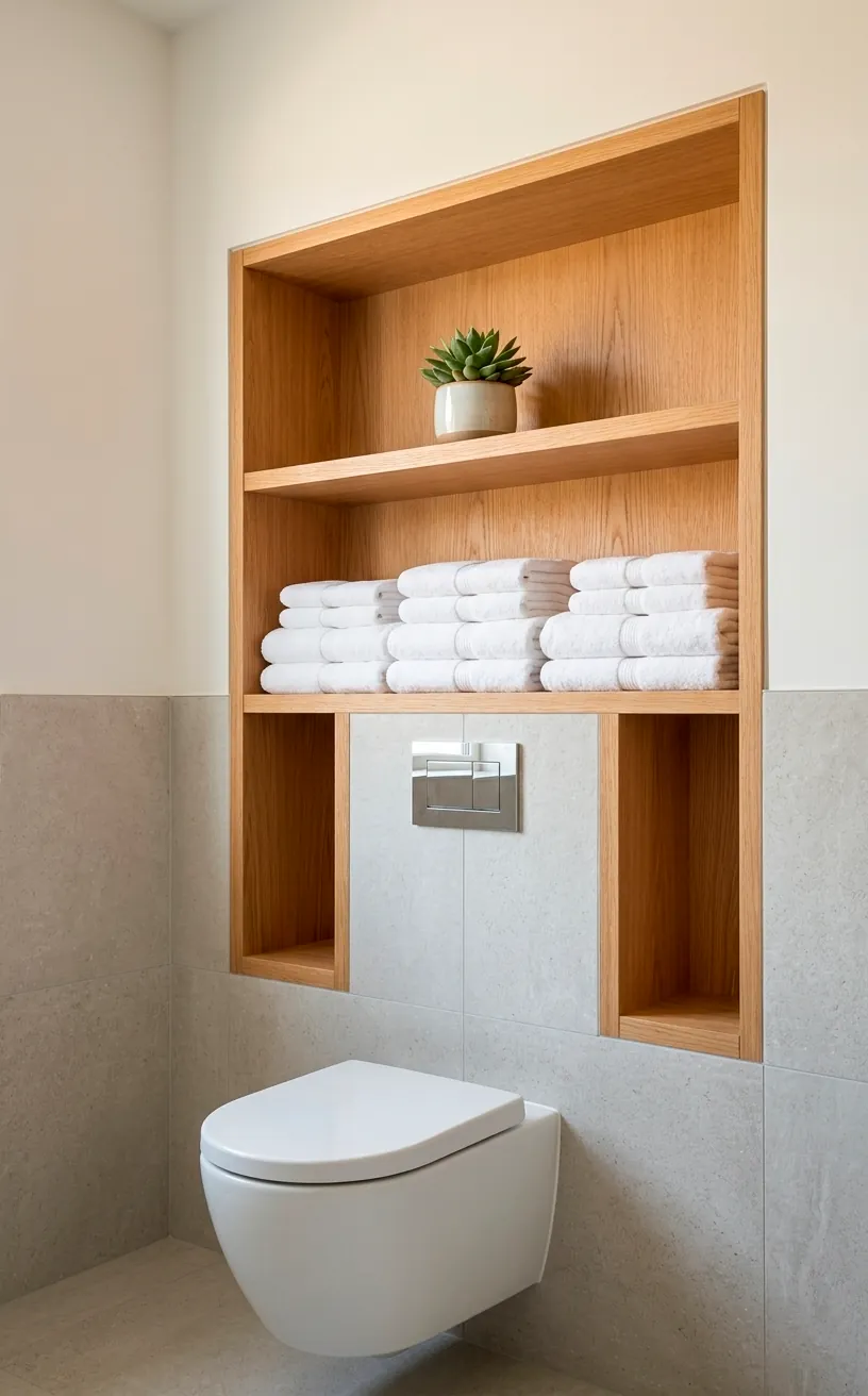 Let’s be real, nobody wants to see your extra rolls of TP or the cleaning spray. But since powder rooms are tiny, storage is a nightmare. I’m a huge fan of recessed wall niches that blend into the wall.