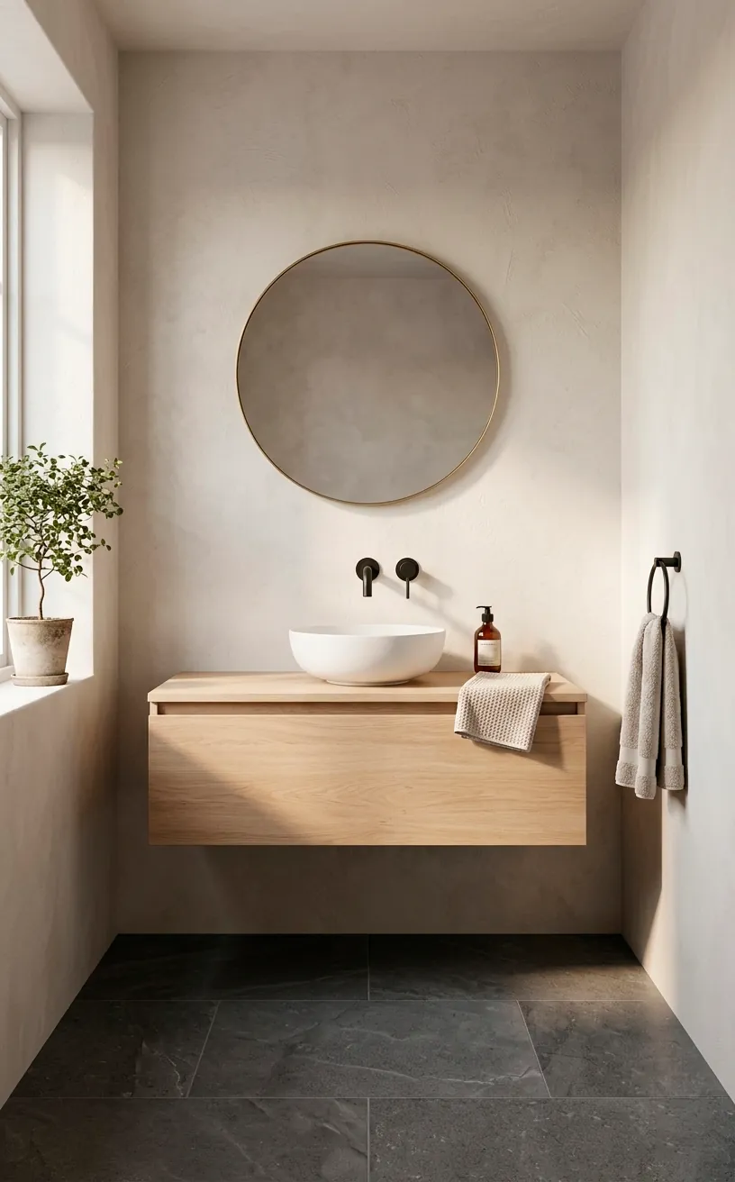 Nobody wants to see harsh shadows under their eyes while checking their teeth, right? Strategic lighting creates a high-end hotel vibe instantly. I swapped my overhead light for a dimmable pendant, and it changed the entire mood.