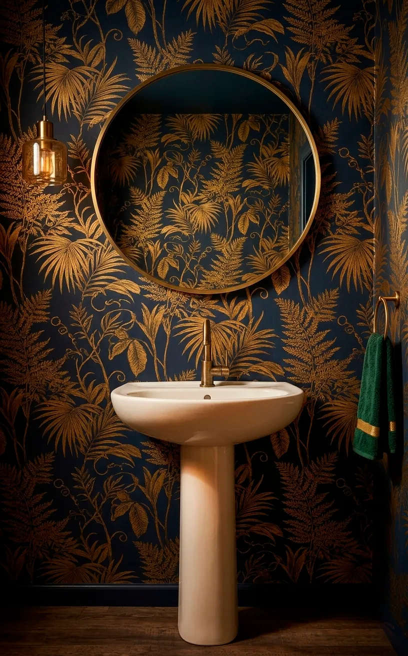 Does a dark pattern make the room feel small? IMO, it actually adds depth that plain white walls just can’t touch. Bold wallpaper turns a boring box into a conversation starter. Just ensure your lighting is on point so guests can see the detail.