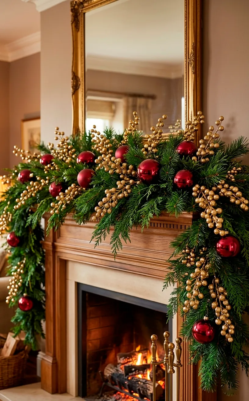 Standard red berries are fine, but gold-dipped berries are a game changer. I like to tuck long, spindly sprigs of gold berries deep into the evergreen garland. They act like little reflectors, catching the light from the fire and bouncing it around the room. You can easily find these at most craft stores, or if you’re feeling adventurous, you can spray-paint some yourself. Just do it outside unless you want your kitchen to look like a C-3PO explosion. I suggest clustering the berries near the crimson ribbons to create a focal point. This creates a high-contrast look that feels both organic and incredibly fancy. Why settle for plain green when you can have a mantle that sparkles?