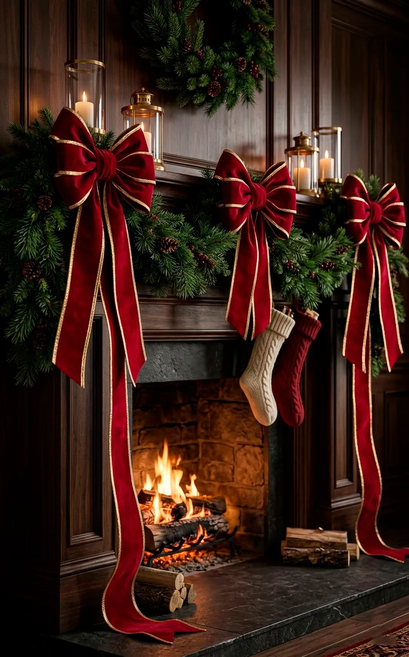 Nothing says ‘I have my life together’ quite like high-quality velvet. Forget those flimsy plastic bows from the dollar store; I want the heavy, deep-red stuff that feels like it belongs in a theater. You should let the tails of the ribbons trail down the sides of the mantle for a dramatic, weeping effect. It adds a softness that balances out the hard edges of the stone or wood.