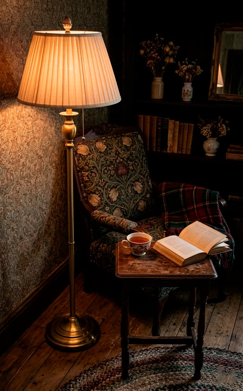 Try placing a few flickering candles—battery-operated if you’re clumsy like me—to create that “old library” glow. I love how shadows dance on the walls when you rely on low-level lighting. It makes the wood look richer and the florals more mysterious. Does your room feel like a cozy cave yet?