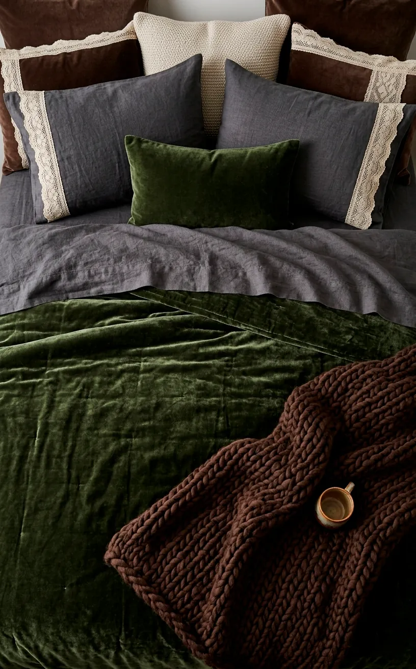 Stick to a color palette that mirrors a forest floor: moss greens, muddy browns, and deep burgundies. I love mixing a wool throw blanket with a silk pillowcase. The contrast feels luxurious and grounded at the same time. Texture is the secret sauce that prevents dark rooms from feeling flat or cold.