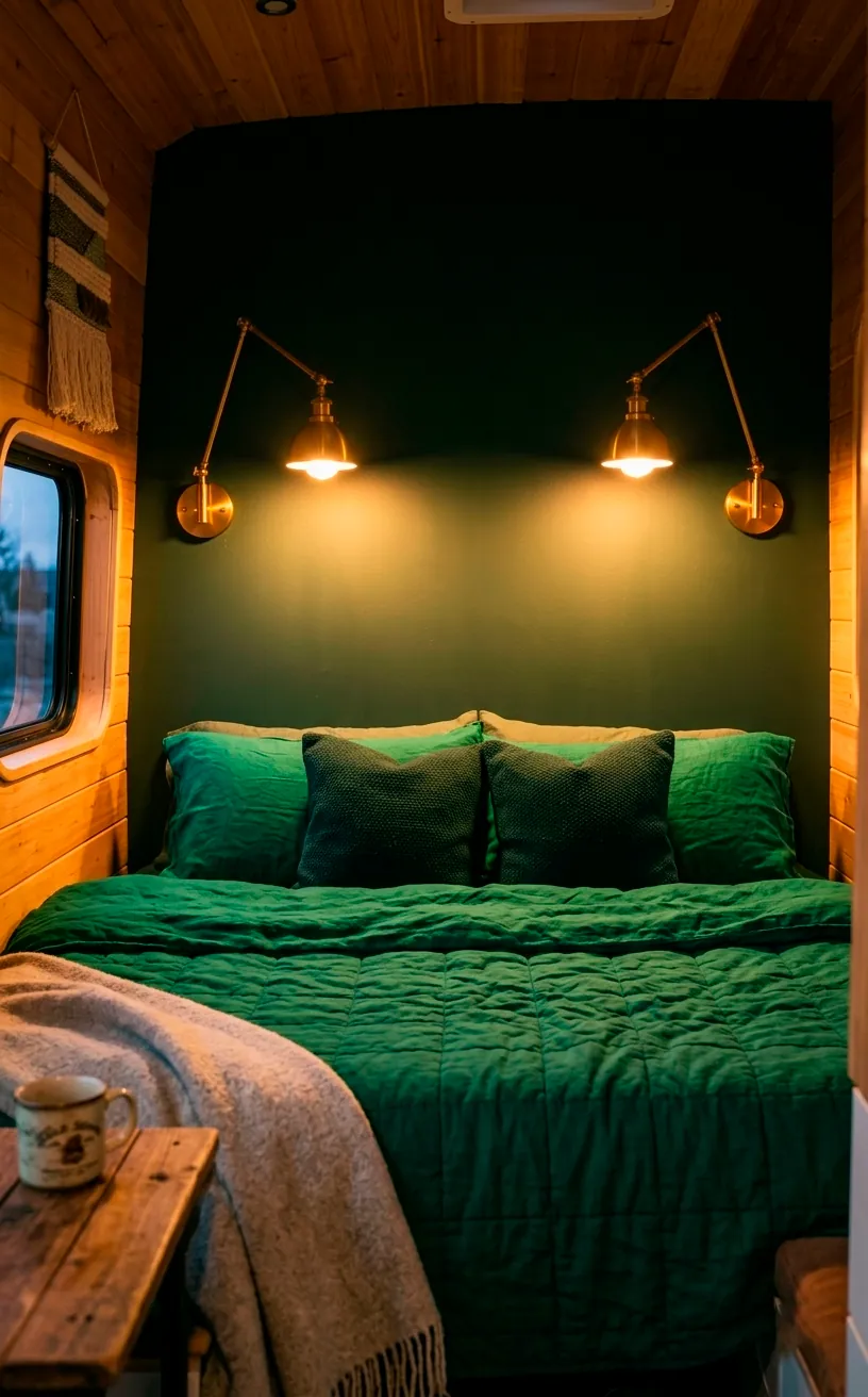 Admit it, the ‘all-white-everything’ van trend feels a bit like living inside a giant marshmallow. Why play it safe when you can inject some serious soul into your build? I’ve found that mixing deep emerald tones with warm brass accents creates an instant wow factor. It is a total vibe change that makes even the smallest rig feel like a boutique hotel room.
