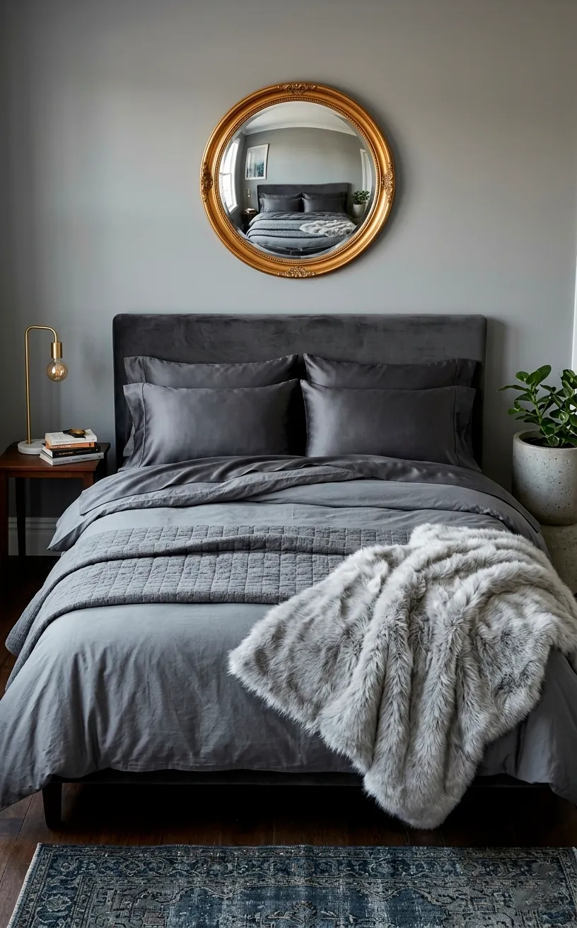 Metallic accents are a grey wall’s best friend. Silver gives off a cool, modern vibe, while gold or brass warms everything up instantly. Are you feeling adventurous? Try a pop of color like mustard yellow or blush pink through your accessories to break up the monochrome. It’s the easiest way to refresh the look without picking up a paintbrush again.