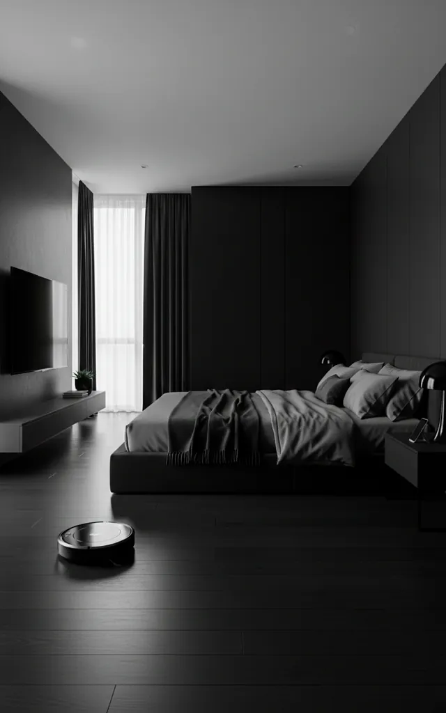 I am going to be real: black surfaces show every single speck of dust. If you own a white cat, maybe reconsider your life choices? FYI, a robot vacuum is basically a requirement for this lifestyle. But honestly, the extra cleaning is a small price to pay for living in a masterpiece. Do you mind a little extra dusting for a home this cool?